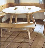 Der zünftige Wirtshaustisch hat immer eine massive Platte aus Ahomholz, das infolge Feinporigkeit leicht gepflegt werden kann und zugleich die notwendige Härte und Abriebfestigkeit aufweist |